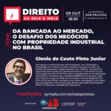 Participe do próximo Direito às Seis e Meia e aprofunde seus conhecimentos sobre negócios e propriedade industrial no Brasil! Tema: Da bancada ao mercado, o desafio dos negócios com propriedade industrial no Brasil. Palestrante: Glenio..