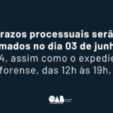 Conforme informado pela Direção do Foro da Comarca de Pelotas, os prazos processuais, prorrogados e suspensos pelos Atos Conjuntos n. 03/2024 e n. 04/2024, serão retomados no dia 03 de junho de 2024, assim como..