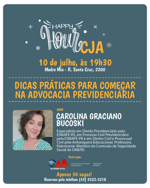 Vem aí mais uma edição do Happy Hour da Comissão da Jovem Advocacia – CJA! Uma noite para aprender, trocar ideias e se conectar com colegas da área!
