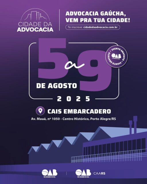 Faça a sua inscrição (gratuita) e confira a programação da Cidade da Advocacia, em https://cidadedaadvocacia.com.br