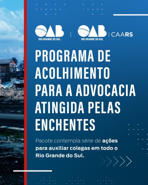 Com o objetivo de apoiar a advocacia gaúcha no enfrentamento do maior desastre climático da história do Rio Grande do Sul, a OAB/RS e a Caixa de Assistência dos Advogados do RS (CAARS) criaram um programa de acolhimento para advogados e advogadas que tiveram suas casas e/ou escritórios atingidos pelas inundações.