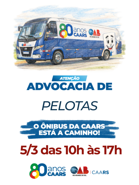 No dia 05 de março, das 10h às 17h, a unidade móvel da Caixa de Assistência dos Advogados do RS estará na Subseção de Pelotas, na Rua Osvaldo Aranha, 71.